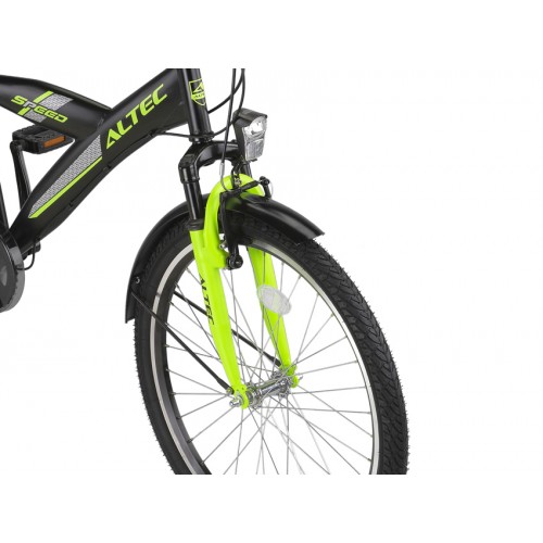 De Altec Speed 24 inch jongensfiets met 3 versnellingen is ontworpen voor avontuurlijke jongens die houden van een goede rit! Het frame is volledig van staal, wat zorgt voor een stevige constructie die tegen een stootje kan. De velgen zijn gemaakt van dubbelwandig aluminium, dat lichter en roestvrij is, terwijl het ook een hoge stevigheid biedt.