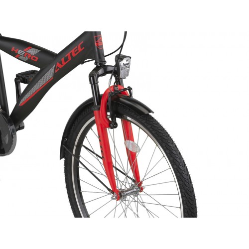 Voor extra zichtbaarheid in het donker is de fiets uitgerust met batterijverlichting. Ook is er veel aandacht besteed aan de veiligheid van zowel de fiets als de fietser. De Altec Hero heeft zowel twee velgremmen als een terugtraprem, wat zorgt voor veilige stops. De velgen zijn lichtgewicht en roestbestendig, gemaakt van dubbelwandig aluminium.