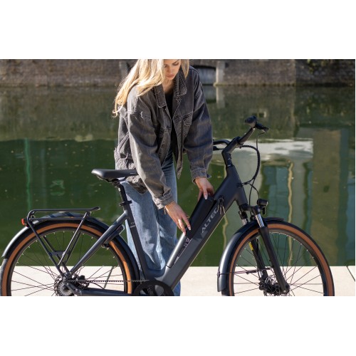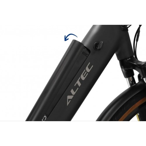 -Met een aluminium frame en een moderne zwarte kleur is de Altec Cento een perfecte keuze voor iedereen die een stijlvolle, onderhoudsvriendelijke en comfortabele e-bike zoekt.