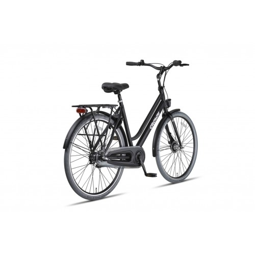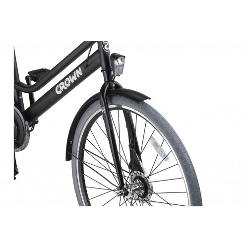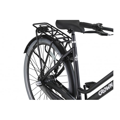 Crown New York Plus Damesfiets 28 inch – Een van de meest populaire stadsfietsen uit ons assortiment. Het frame bestaat uit staal en is daarom erg stevig gemaakt. Lange afstanden afleggen op deze fiets is geen enkel probleem. U kunt namelijk met behulp van de 3 versnellingen altijd de juiste trapzwaarte inschakelen. Ook afremmen is eenvoudig door de toevoeging van Rollerbrakes handremmen. Het is echter wel lastig om deze zelf af te stellen wanneer u een fiets in doos ontvangt. De fiets rijklaar laten leveren is dan ook een goede optie. S’ nachts zorgt de verlichting er voor dat u toch goed zichtbaar blijft. Door het inbegrepen ringslot kunt de fiets overal onbeheerd achterlaten.