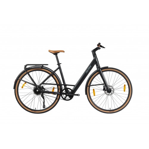 Het elegante, robuuste frame met lage instap maakt op- en afstappen gemakkelijk en geeft vertrouwen in druk stadsverkeer. Daarbij zorgen de strak geïntegreerde verlichting, de nette kabelafwerking en de stabiele standaard voor een praktische én stijlvolle afwerking.